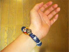 アンティークの鈴と、京都の藍染の生地を使ったブレスレット。