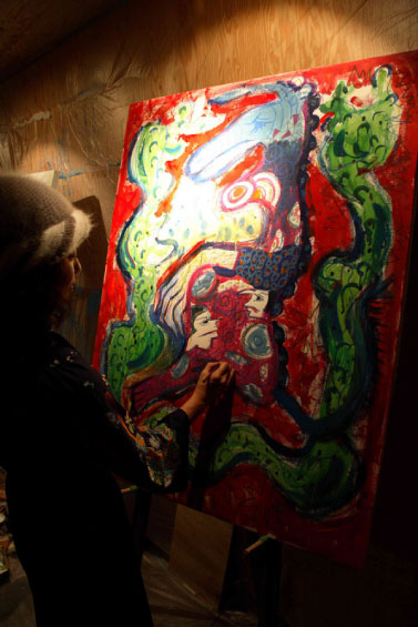 写真は先月行われた、ドッペルナンチャラ倉庫でライブペイントをしたときのものです
