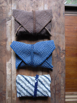 なんともいえない良い色、良い形のアイテムを彼自身で染めた藍染の丈夫な糸で編んでいく。