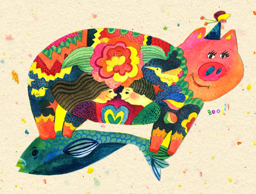 イラストは愛いっぱいのブタさん
