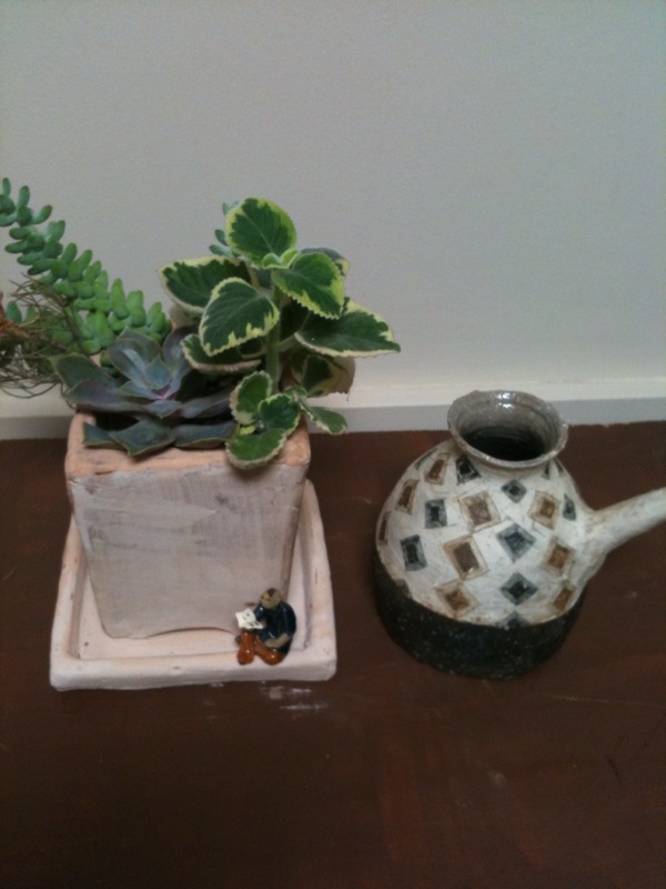写真は我が家に仲間入りした、多肉食物と、大宮の麻こころ茶屋さんで購入した素敵な器。