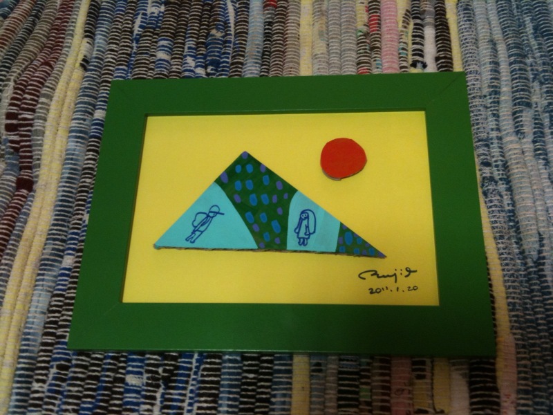 写真は最近つくった、段ボール絵です。