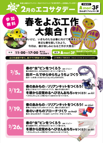 内容 「春のいきものブローチをづくり」 各回30分程度