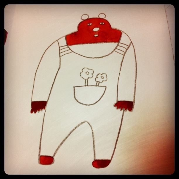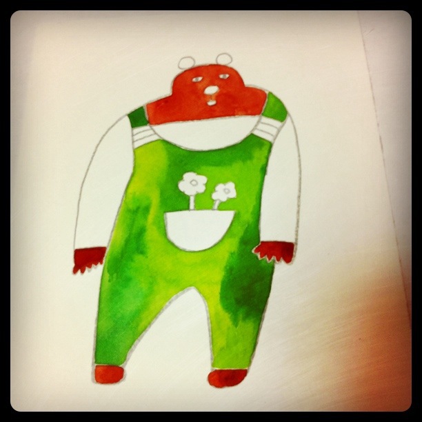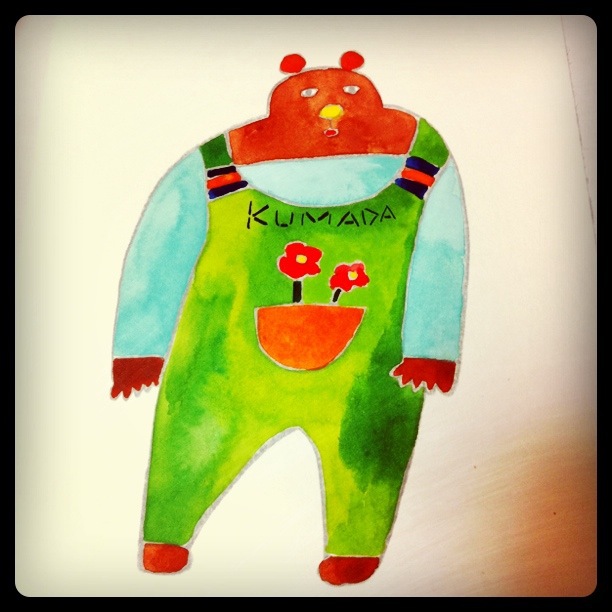 写真のイラスト、熊田くんは額付きで3500円です。