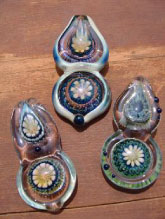 ガラスのアクセサリーとヘンプで編んだ帽子