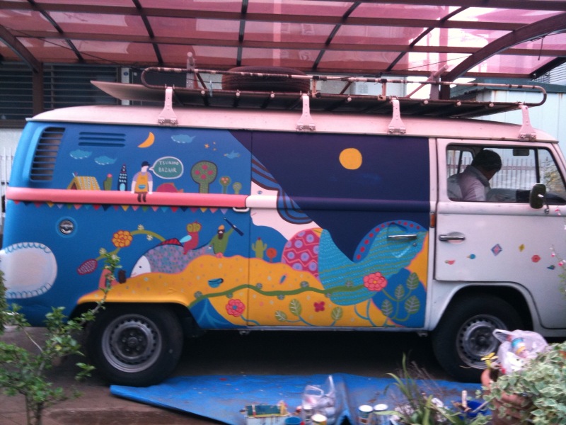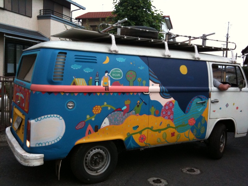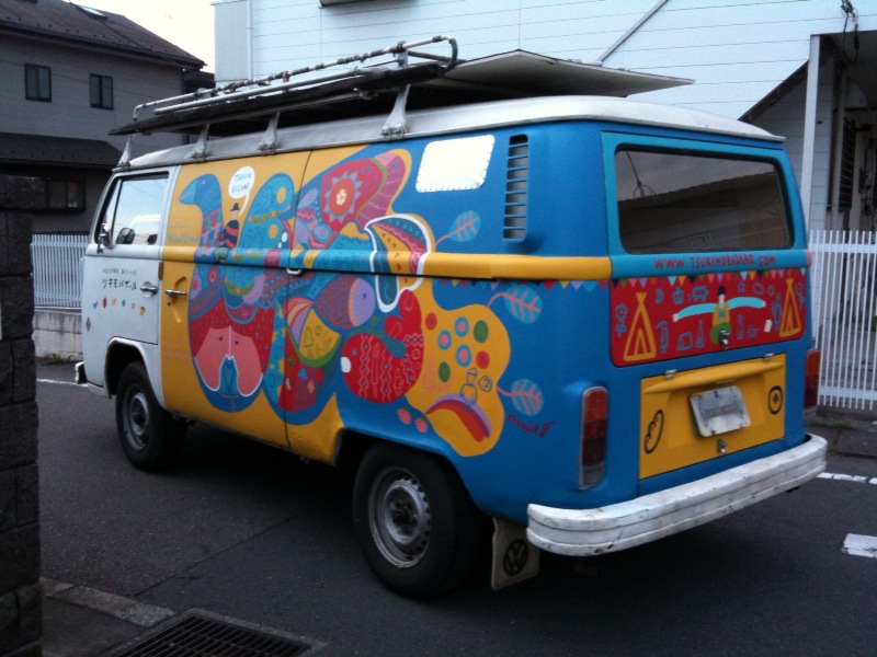 ひゅー!先月末から、ワーゲンバスにペンキで絵を描いておりました。
