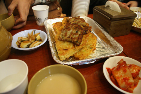 ここのチヂミとマッコリの相性が抜群にいいんだって!