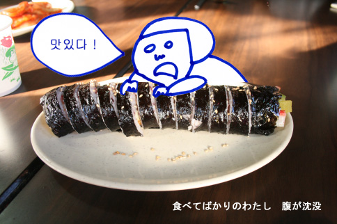 キムパ(海苔巻き)を一気に食べつくし、満腹。うまうまじゃー