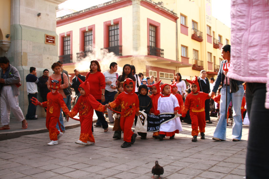 ソカロを一人、ぶらぶらしていると、子供たちがパレードをしているのが見えた。
