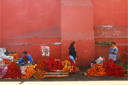 街はもう死者祭が近いということで、祭壇に飾る花がマーケットには溢れて、