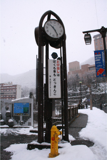 札幌からバスで1時間ほどゆられ、到着したのは定山渓温泉。