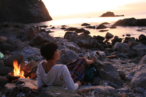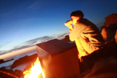 さぁ、もうすぐ日が落ちる 愛ちゃんが火をたき始めた。