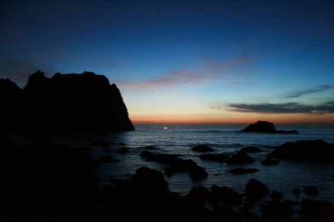空が深い青に包まれると 今度は漁船の小さな白い光がポンポンと海に落ちて